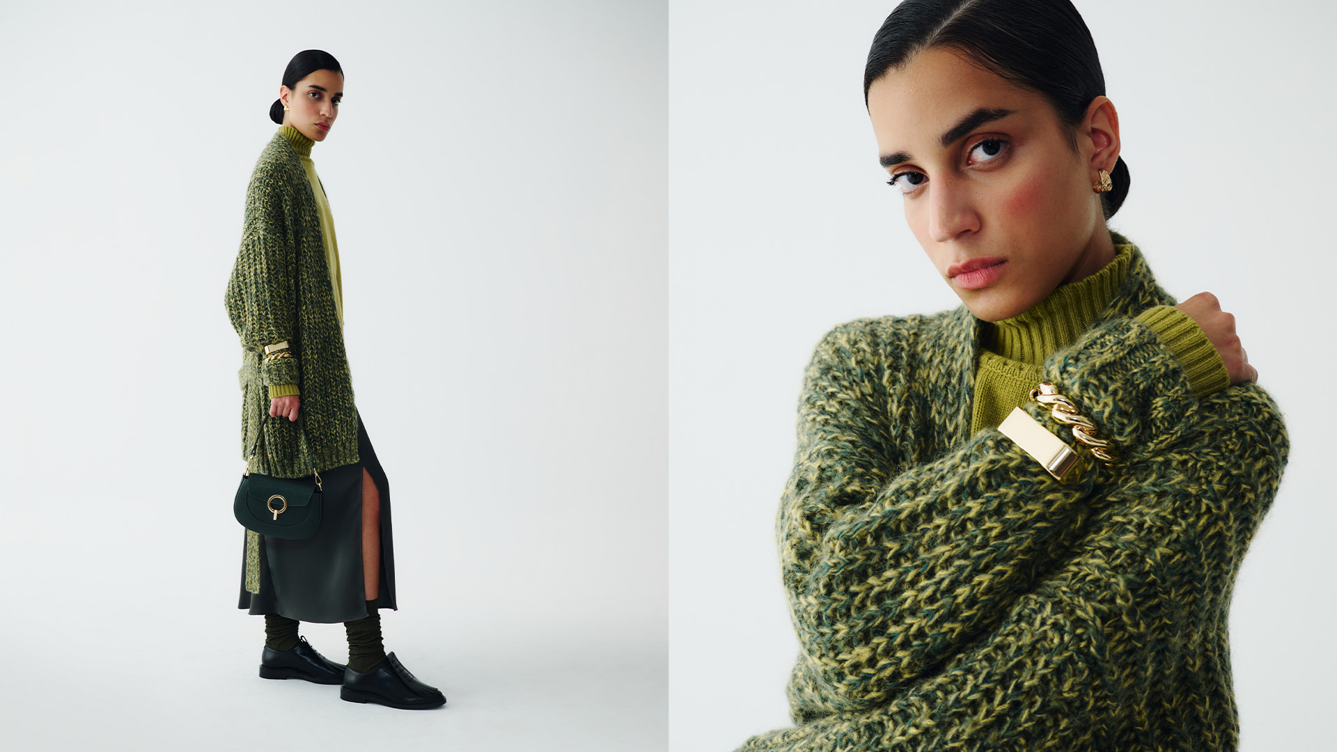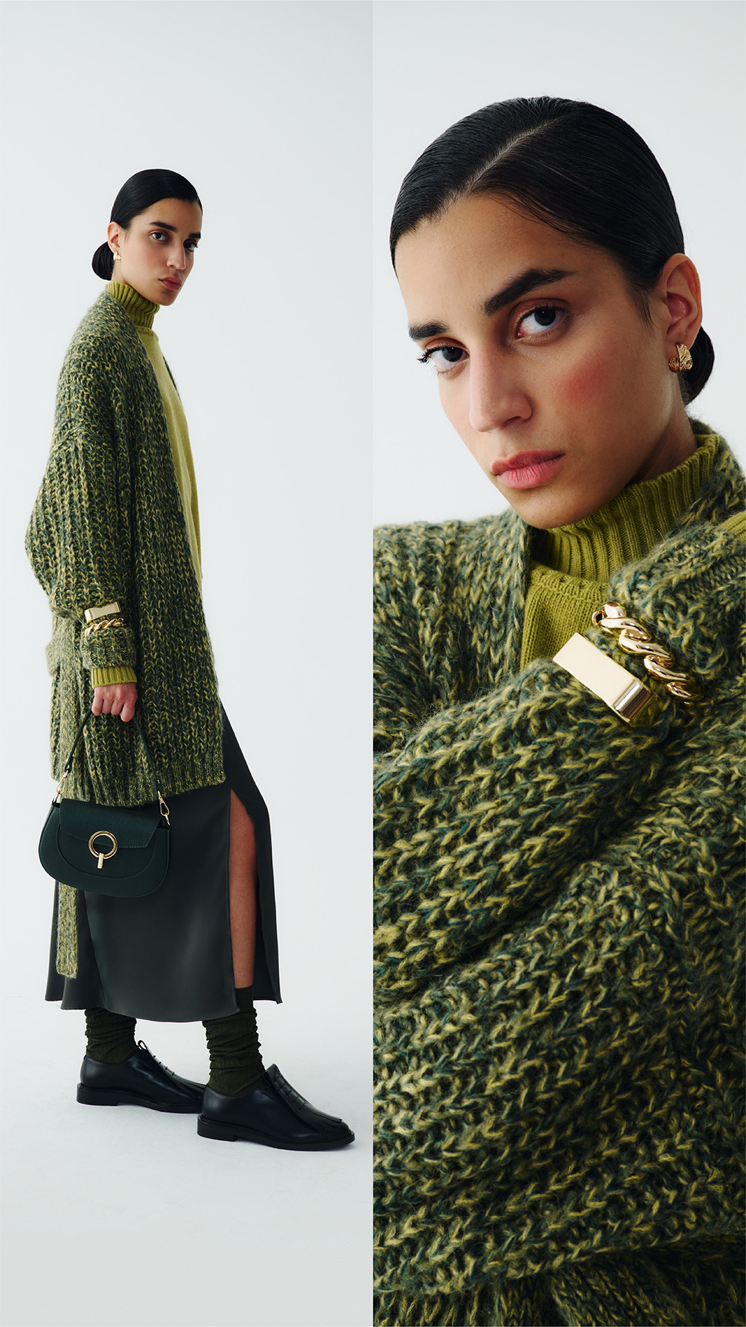 Shake up your winter wardrobe with the many shades of green. From classic, versatile military green to vibrant acid hues and the refined elegance of olive green. This palette works perfectly with our puffers, parkas, pleated skirts and wool sweaters. Discover our edit and give your style a fresh touch.