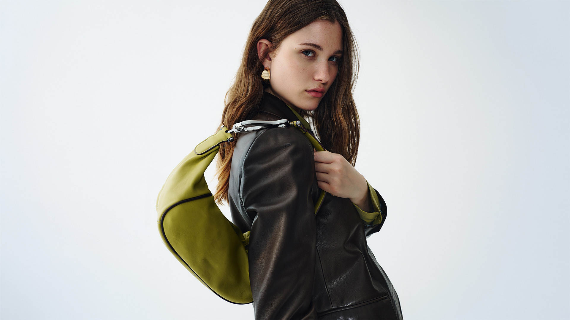 Touches of acid green and vibrant red break the monochrome.