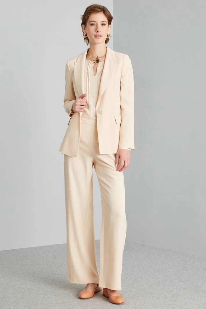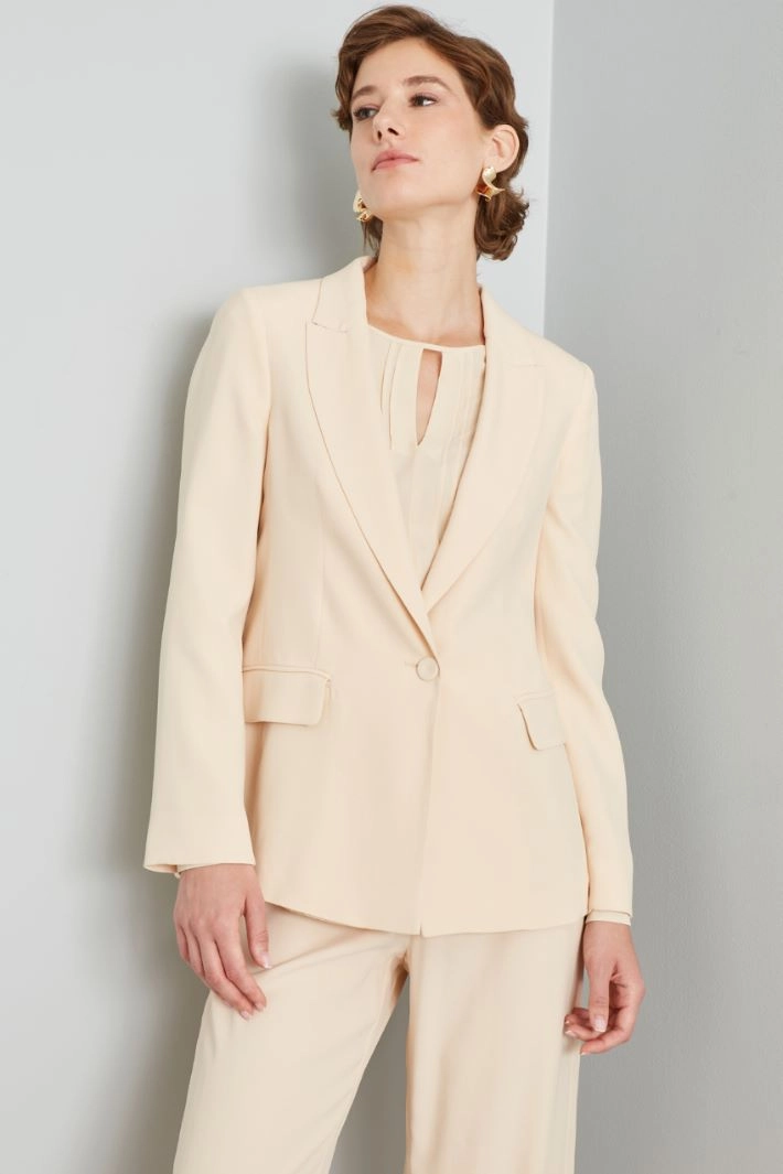 Straight-fit envers satin blazer with lapel collar, long sleeves, double-welt pockets with flap and slit on the back. Single-breasted button fastening. Lined.
