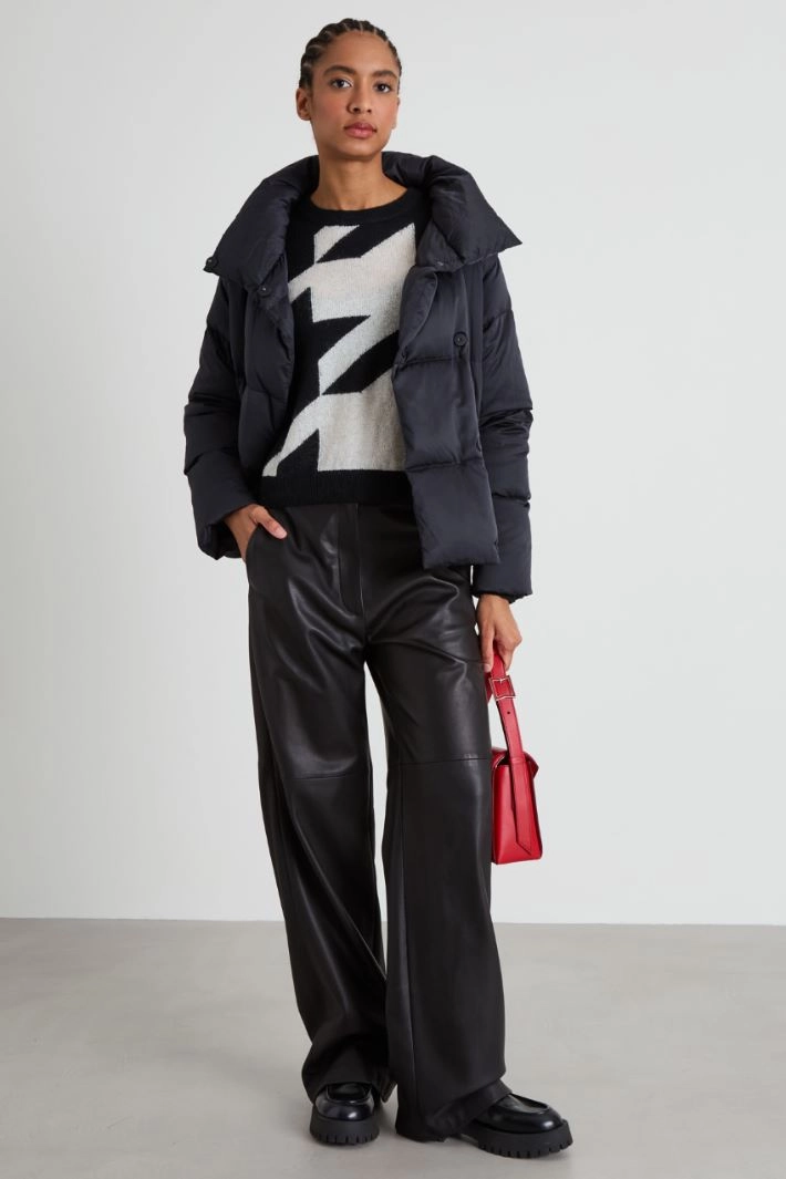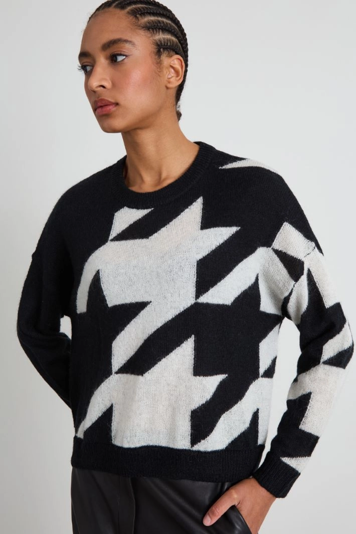 Regular-fit sweater in mohair blend yarn, with inlay work on the front, crew neck, long dropped sleeves and ribbed trim.