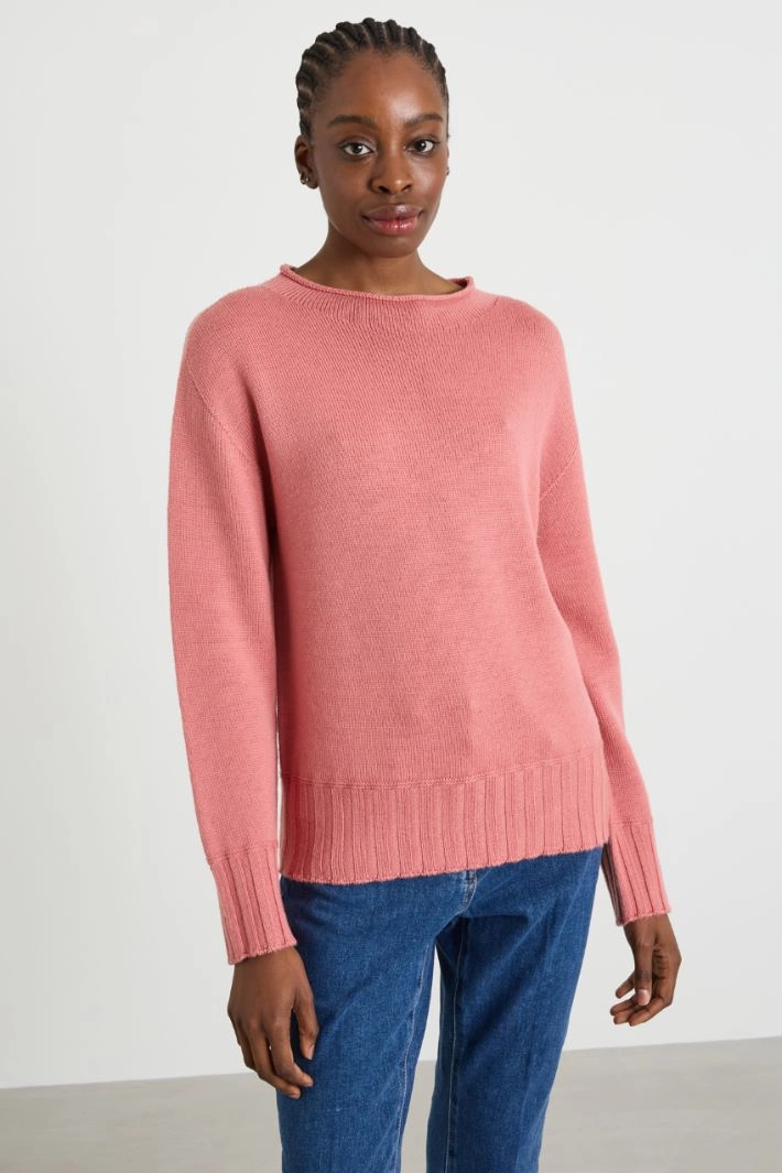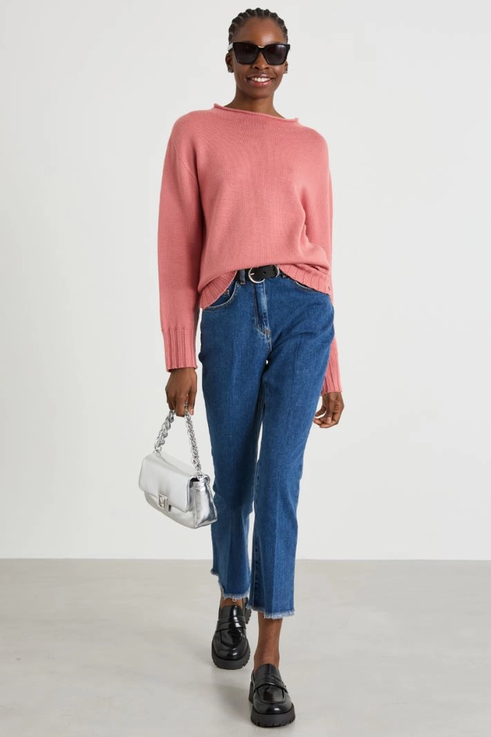 Straight-cut sweater in pure wool yarn, with round neckline, long sleeves and ribbed edges.