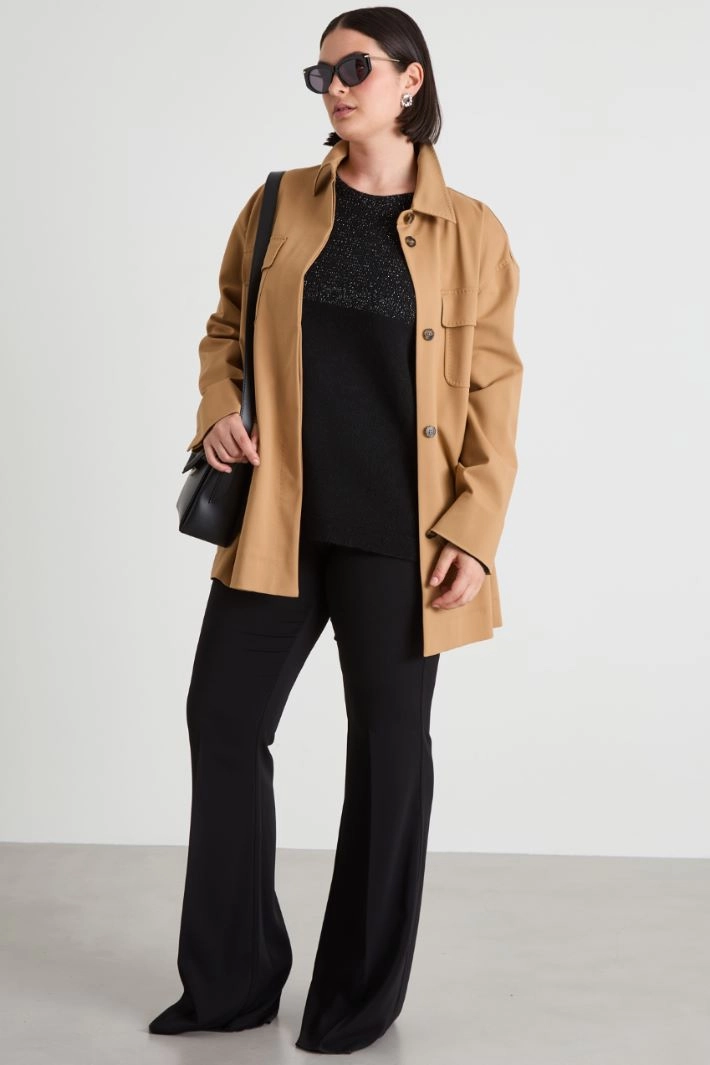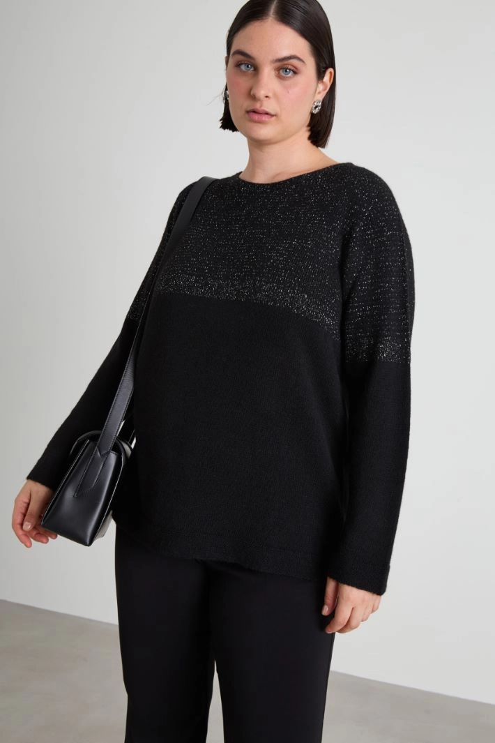 Straight-cut sweater in wool blend yarn, with round neck and long sleeves.