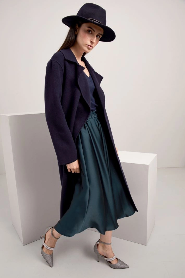 Fedora made of pure wool felt, with tubular leatherette ribbon knotted on the side.