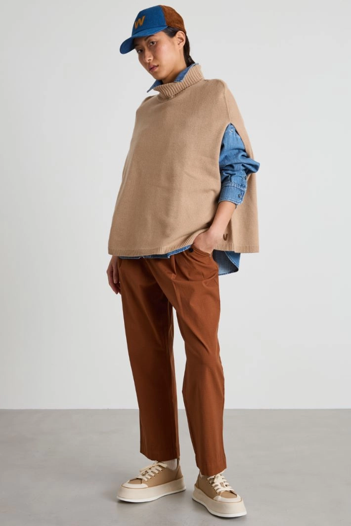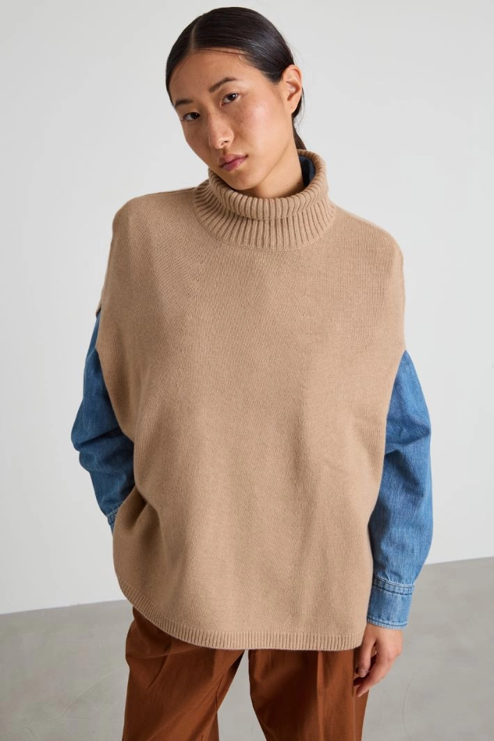 Regular-fit poncho in pure cashmere yarn, with a high neck and ribbed trim.